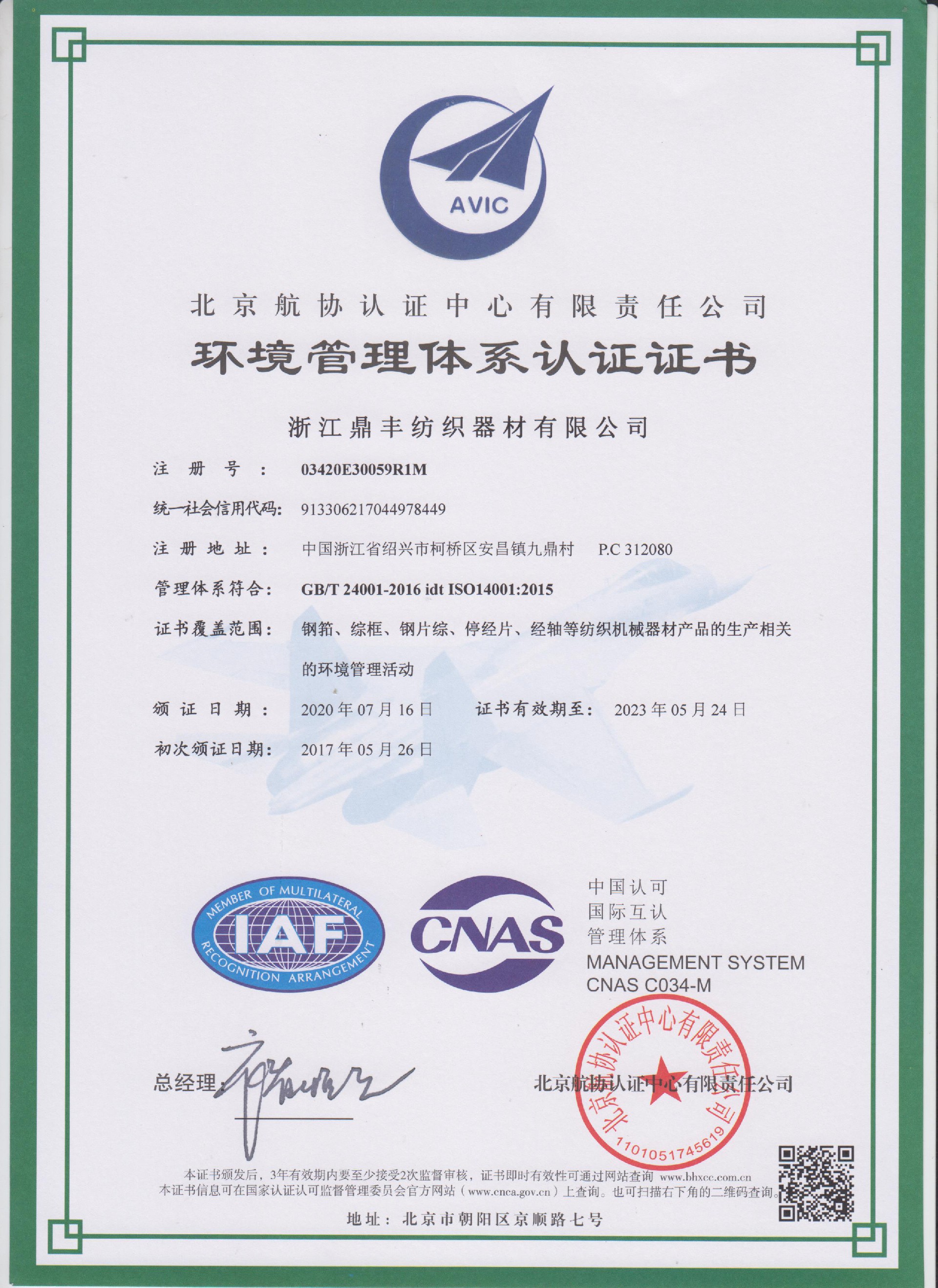 浙江鼎豐紡織器材有限公司始建于1986年,是一家專業生產各類無梭織機用鋼筘:噴氣筘、噴水筘、劍桿筘、其他類型鋼筘;鋁合金綜框、鋼片綜、停經片、經軸、織軸、卷布輥等產品及配件的民營企業。